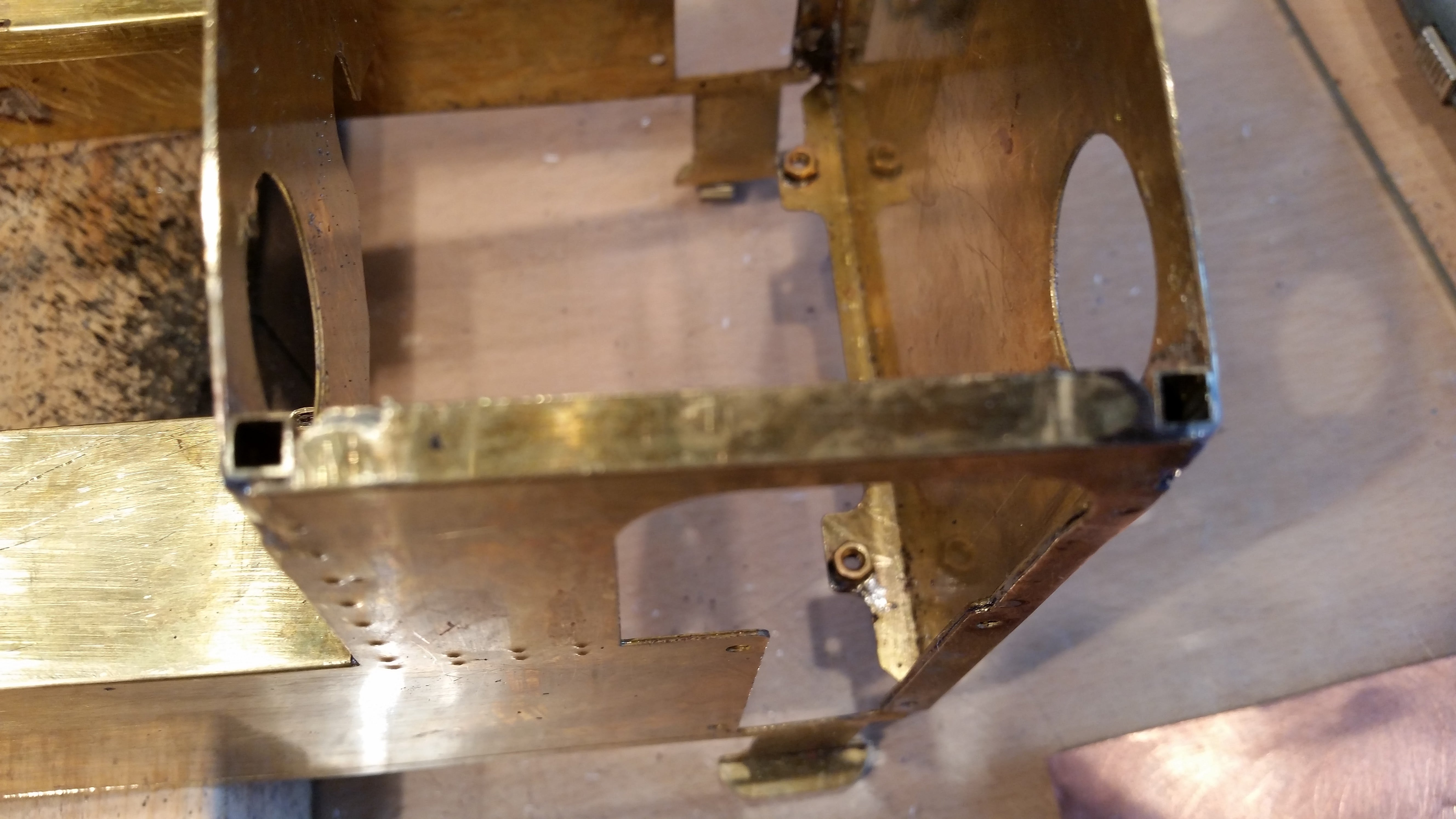 The cab roof hinging system was not to my liking on a couple of points – it didn’t fit very well and the hinge screws showed on the outside of the loco. The fit was down to the original cab assembly which is slightly twisted. I did not want to completely unsolder the cab so decided to change the fixing method instead. I soldered some brass rod under the cab roof with 4 legs protruding down at each corner. In the cab I soldered a piece of square tube (round would have been fine but I had square in the drawer!) in all 4 corners. To fit the roof you just align the rods with the tubes and push down. I then soldered up all of the spare holes in the cab sides. A bonus on this modification is that the roof no longer rattles when the loco is in use!